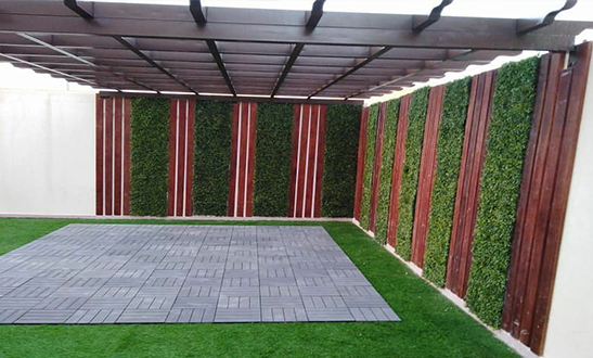 - برجولات حدائق لكسان مع العشب الطبيعي.