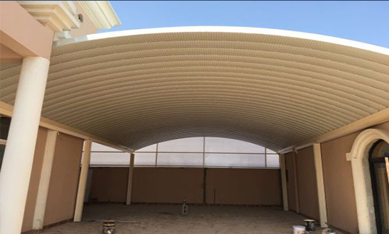- نقوم بأخذ مقاسات سقف المظله ومن فم يتم تفصيل السقف وتركيبه.